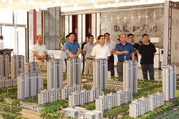 王思軍一行參觀了徽鹽虹都府營銷中心并深入項目現(xiàn)場進行實地考察,對施工人員進行慰問,聽取了施工管理人員的介紹,對項目的現(xiàn)場管理、施工質(zhì)量和安全工作給予了充分肯定。